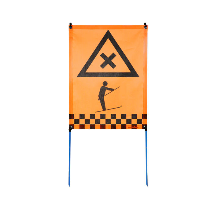 Hinweis- und Gefahrentransparent VERKEHRSORANGE "KREUZUNG - SCHLEPPLIFT" mit 2 Stangen